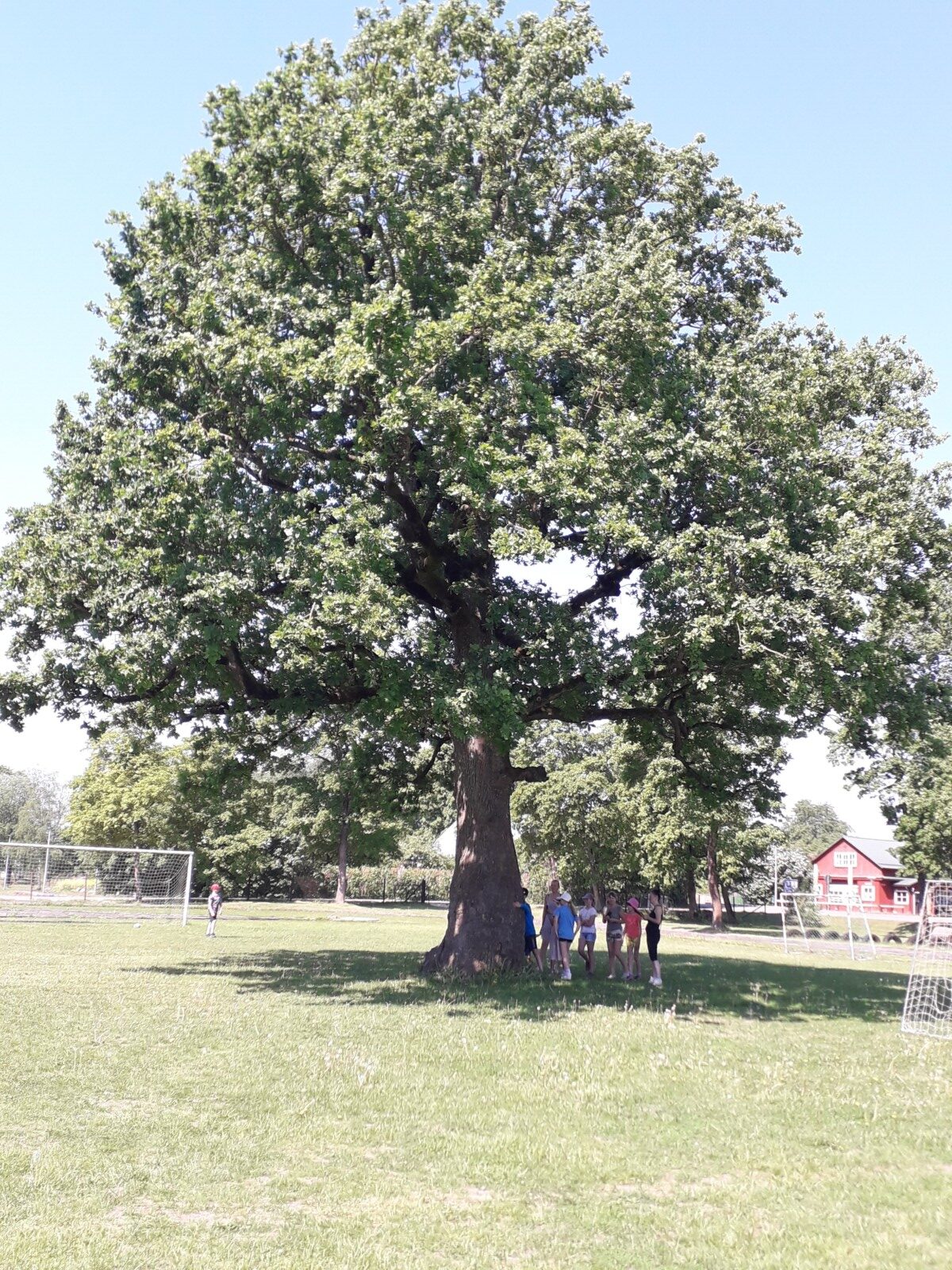 Koguvast tulles tegime peatuse Orissaares. Mõõtsime kuulsat tamme, mis asub jalgpalliväljaku keskel ja proovisime mängida jalgpalli.